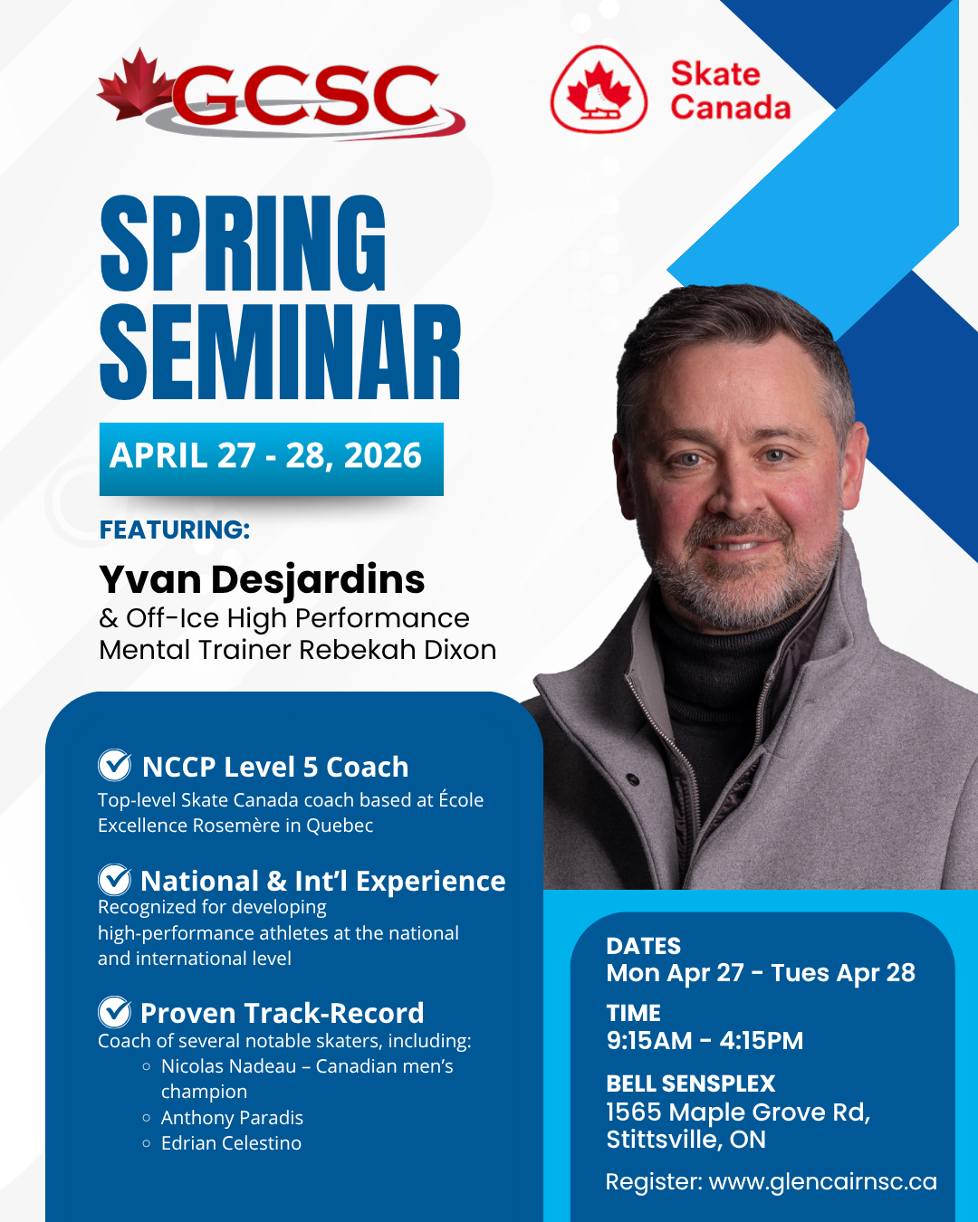Spring Seminar April 27th & 28th/2026 9:15am-4:15pm at Bell Sensplex - Featuring Yvan Desjardins National & International Coach